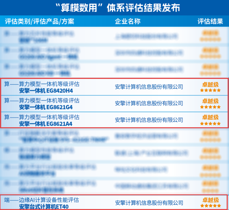安擎4款產品榮膺認證,是對安擎產品在算力資源能力、算力模型能力、算力數據能力和算力應用能力等全方位能力的認可。