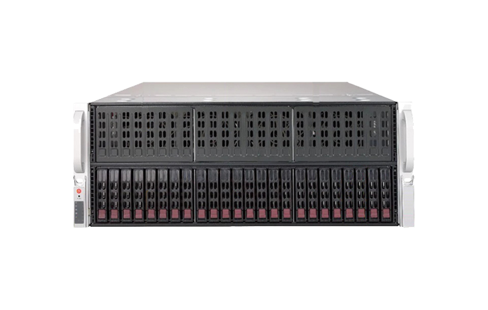 支持 24 塊 2.5 寸 SAS/SATA 熱插拔硬盤位(其中 2 塊支持 NVMe),可選 6 塊 3.5 寸SAS/SATA 熱插拔硬盤位。